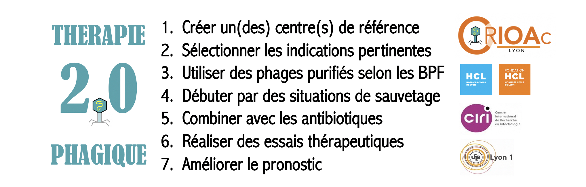 Le CRIOAc Lyon souhaite démontrer la pertinence et surtout l’efficacité de la phagothérapie, pour que ce traitement fasse partie intégrante des solutions thérapeutiques disponibles pour les patients dans le cadre des IOA, mais potentiellement pour tout type d’infection résistante ou en gageant le pronostic fonctionnel ou vital.